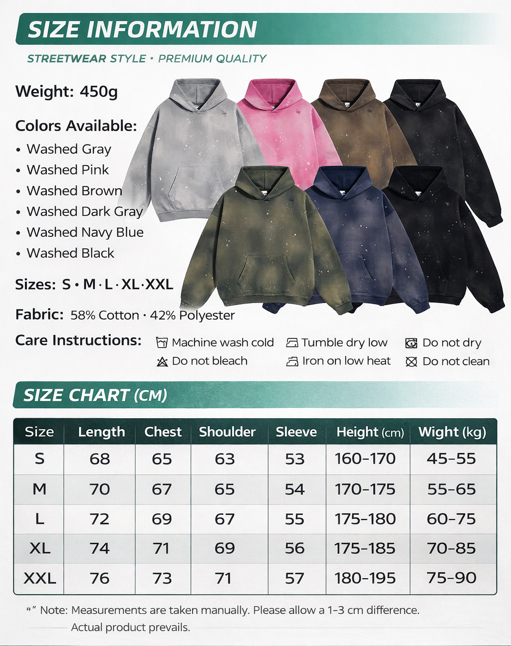 Machine wash / hand wash with water under 40°C